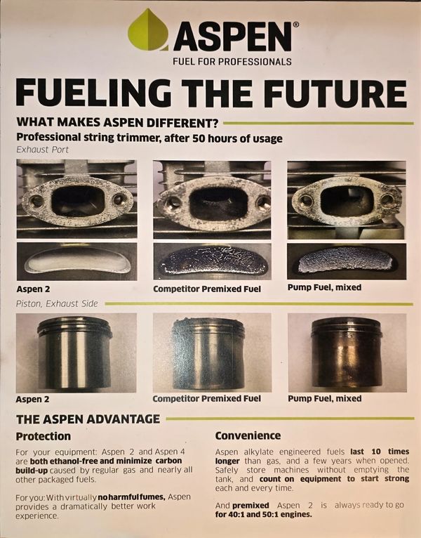 ✔️ Aspen Alkylate is significantly cleaner than regular gasoline and completely ethanol-free.