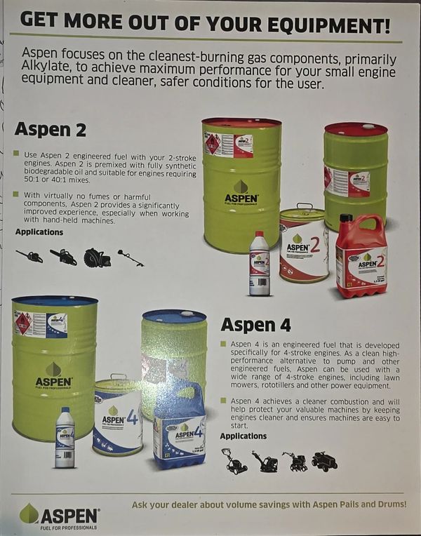 ✔️ Aspen 2 is sold premixed for two-cycle equipment to avoid customer mixing problems.